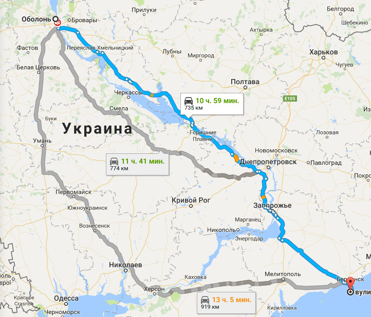 Я бы так ехал, из опыта прошлых поездок в Киев и на моря. Если в час пик, то однозначно лучше мимо Днепра через Днепродзержинск(у нас все полатано). Наконец то гугл красиво и правильно ведет по Запорожью. Карта