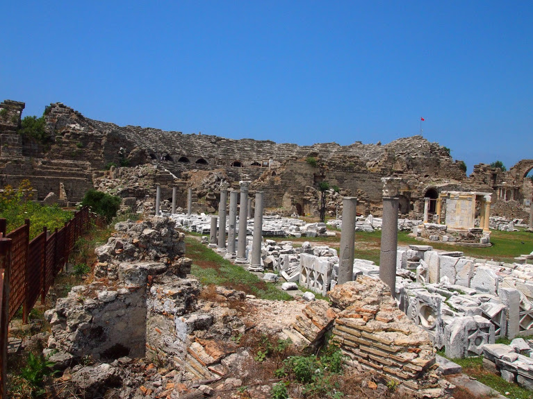в самой Алании вроде есть какие-то развалины, нам очень понравилось побродить по Сиде - отличное место на весь день, развалины древнего амфитеатра, храм Аполлона, мыс, на котором все это расположено. Если 200 км, то в Мира-Кекова, но таки далековато, хотя многие и в Израиловку гоняют. Ну и традиционно дешево и сердито - рафтинг, рекомендую.