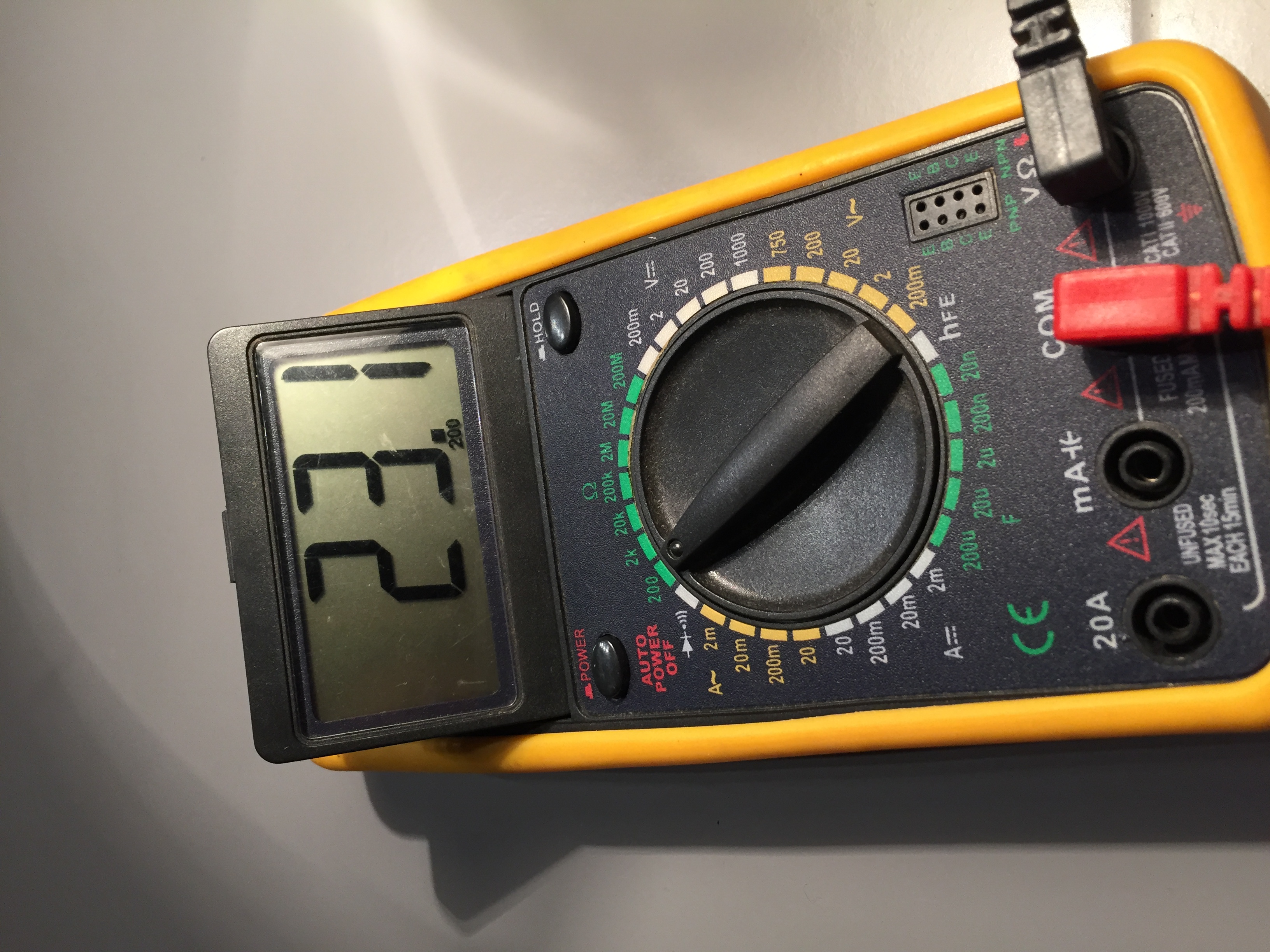 23 Ома - якраз відповідає потужності нагрівального елементу. Точну потужність я не скажу, бо не знаю точний температурний коефіціент опору нагрівального елементу (НЕ). На холодну - це відповідає десь 2,3 кВт, але при роботі спіраль холодна не буває, значить споживана потужність менше цієї.