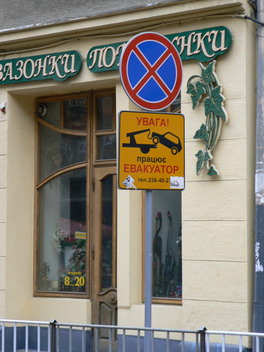 Ось як виглядає знак 3.4 "Парковка заборонена" з інформаційною табличкою не по ДСТУ у Львові