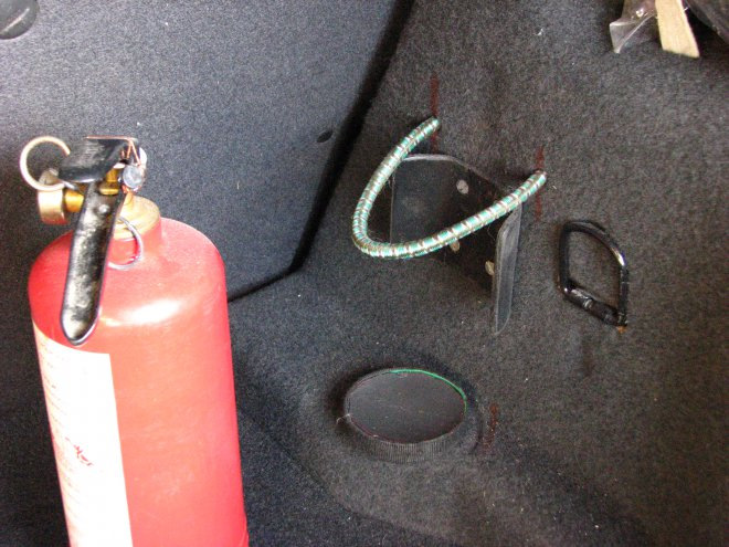 В общем, может какие интересные варианты крепления огнетушителя есть, чтобы не болтался и быстрый доступ был? Може какая сумка органайзер?
