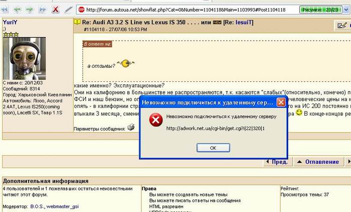 Ага, спасибо, я так идумал, что с баннерами связано. Надо, блин, посмотреть свою Оперу и Аутпост. Че эт они, гады, баннеры пропускают.=)
