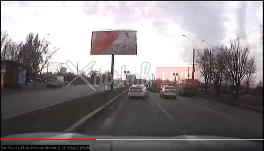 Те що він у той момент тиснув вже не на газ а на гальма, щось міняє? Ну так, як би тиснув ще на газ, то влетів би просто у зад передній автівці з тяжкими наслідками. Навіщо взагалі було робити цей ризикований маневр на грані керованості автівки та зчеплення шин? (бо на 11:00 автівку вже несе як ми бачимо)