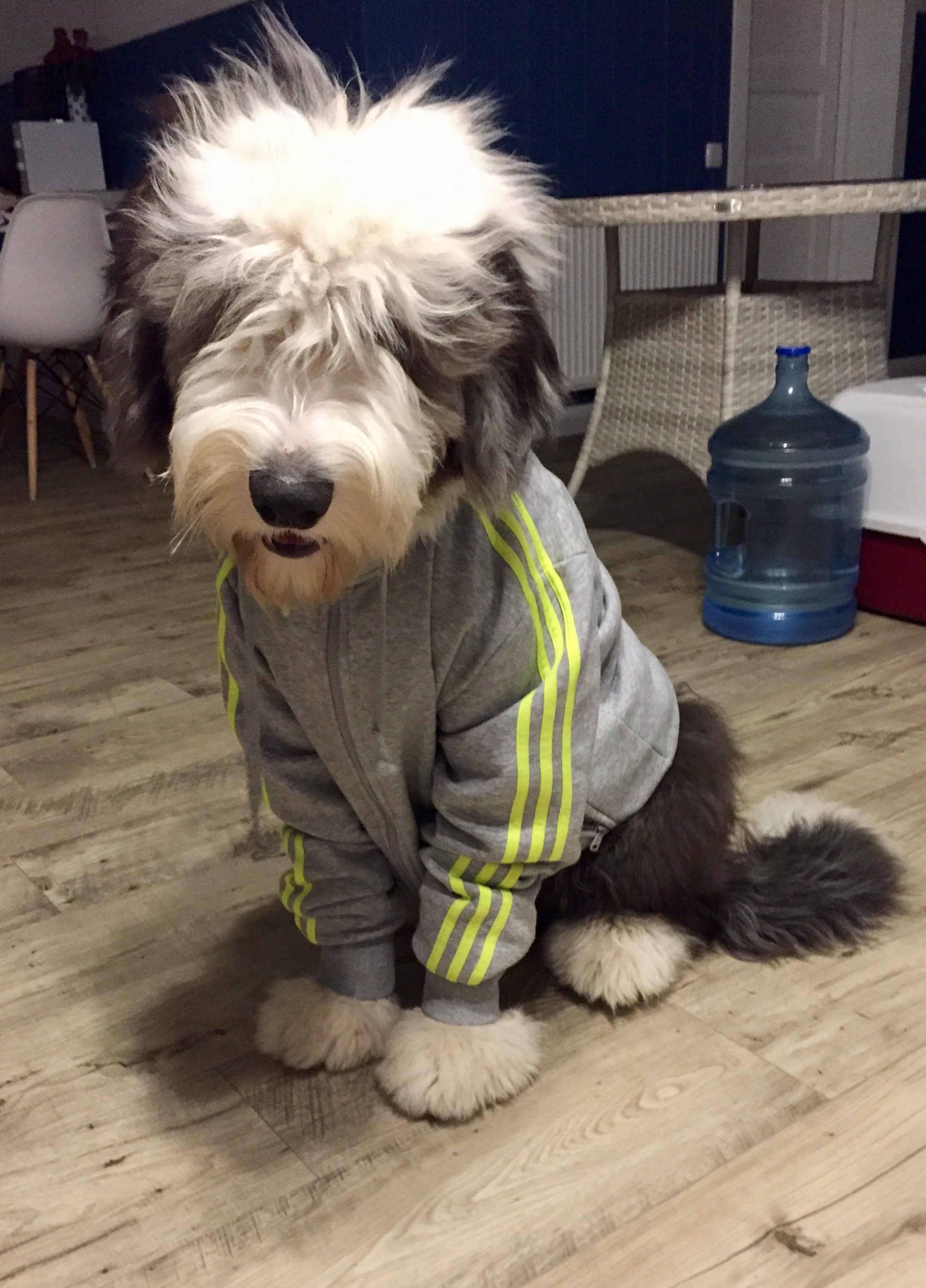 комбез ищу, чтобы максимально закрывал пузо и лапы такого нет( пока ходим в обносках)