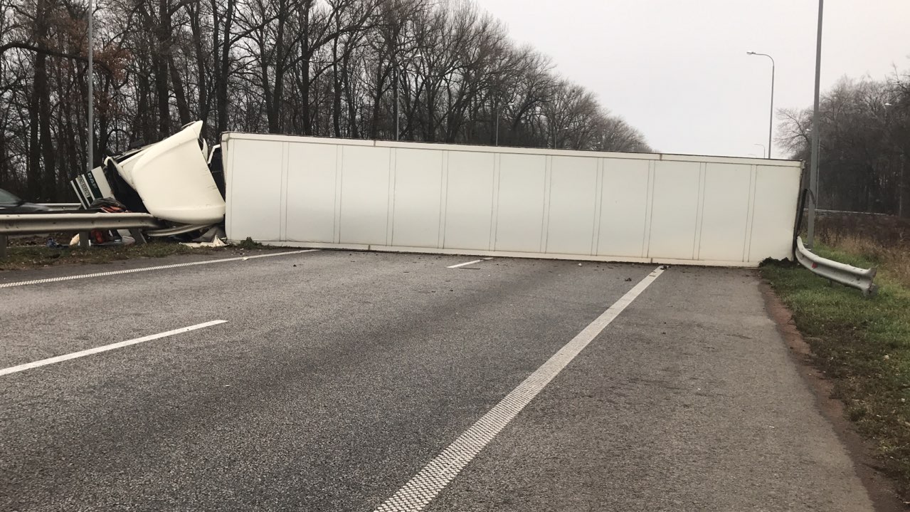 В 18 еще лежала, со стороны кабины зрелище печальное Похоже, что уснул, отбойник держал до последнего, но сломался.