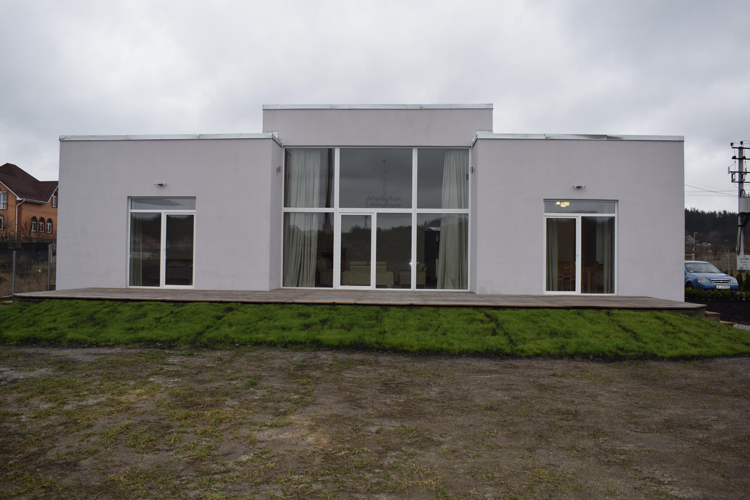 150м2, одноэтажный с плоской крышей, высота потолков 3.0м.,3 спальни, 2санузла, гостинная 40м2 - высота потолка 4.1м., панорамное окно на юг, кухня, столовая, громадная терраса - 65м2. Отопление: газовый котел, тепловой насос 11квт. и резерв-электрокотел для морозов. Теплые полы в санузлах, коридорах и гостиной, радиаторы в жилых комнатах, кухне, столовой. Гарячее водоснабжение: газовый котел или 2 электробойлера. В гостиной большой камин. Дом полностью оборудован мебелью и техникой, мебель из натурального дерева. Подъезд асфальт. Участок 10соток. Участок огражден забором, откатные ворота с автоматикой. Рядом с домом много мест для отдыха: лес 200м., озеро в с.Ходосеевка -2км., озеро в с.Круглик-2км., родниковое озеро в лесу - 500 метров Интернет - оптоволокно, Абонплата 200грн. Соседи хорошие. Вода - свой колодец, вода подается в дом автоматически, фильтр в доме. Канализация - свой септик. Коммунальные платежи - свет по счетчику, тепло - 2 варианта: газ или электричество, можно комбинировать, есть тариф на отопление - 3000квт на мес по 0.9грн. Цена 1400у.е., скидки в зависимости от срока аренды и условий оплаты. С ув. Рассмотрю вариант аренды с правом выкупа.