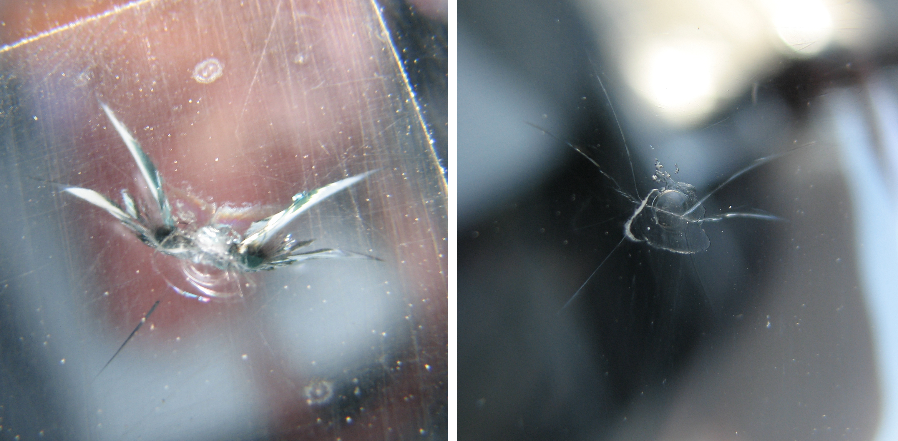 Воспользовался рекомендациями в этой теме и сегодня тоже посетил озвученный сервис. Было два скола свежих (в Черкассы в субботу съездил, ага ), первый размером с 10 копеек вместе с лучами, второй чуть меньше. Работа заняла чуть больше часа, после ремонта глазом почти незаметно, лучики выглядят как просто легкие царапинки на стекле, то только фотик на макро всю подноготную показывает. По большему сколу мастер предупредил, что при установке присоски стекло может хруснуть дальше по лучам, не смотря на всю аккуратность работы, потому делаем на мой страх и риск (или не делаем), но мне повезло, сказал, что после ремонта дальше трещины не пойдут. За все заплатил 500 грн. Заезд на место через конечно, с перекрестка Ревуцкого и Здолбуновской через весь гаражный комплекс. Фото первого скола до-после: