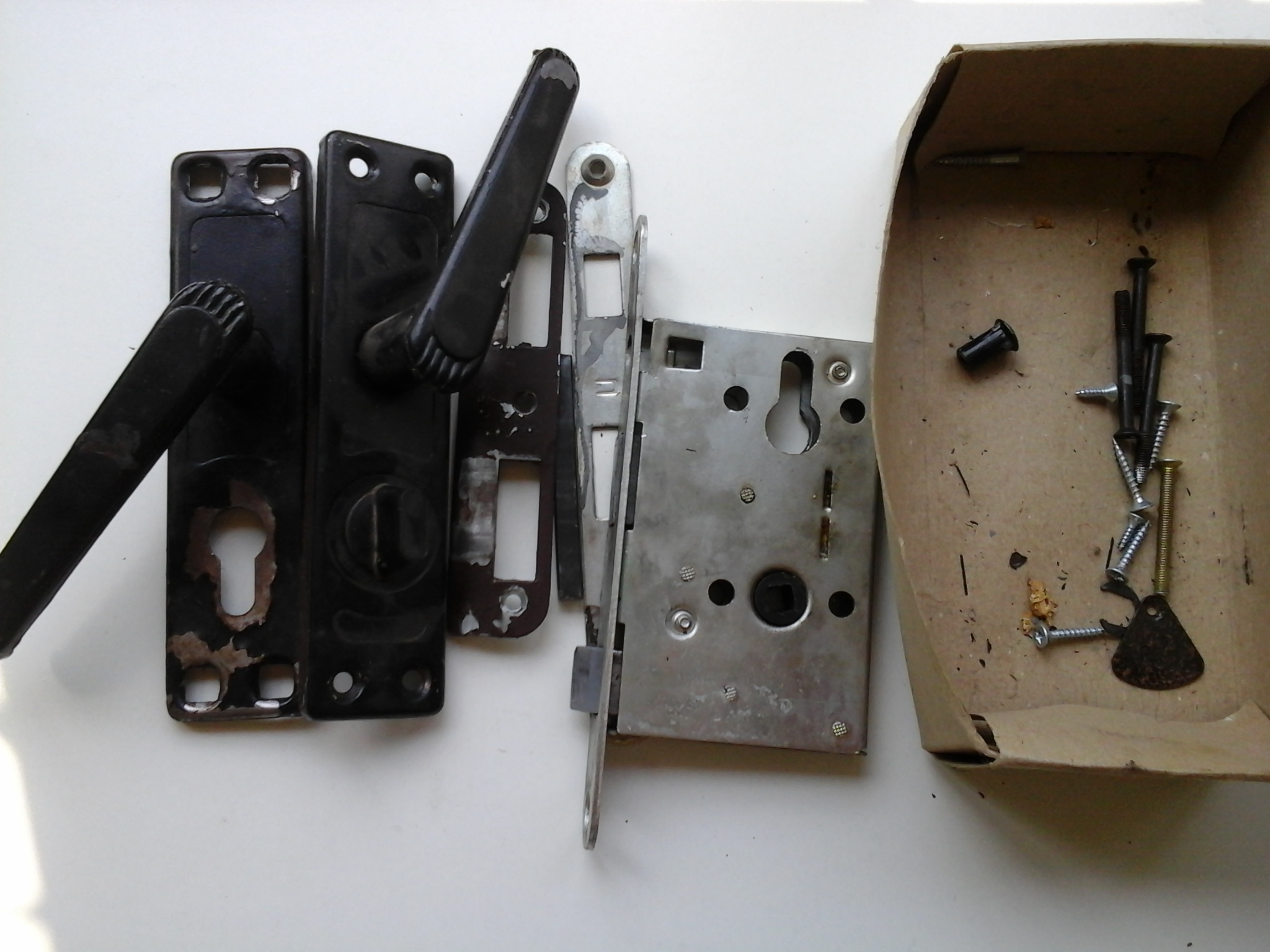 у меня есть б/у комплект советский, снял с дачи , сталь . Не порошковая дрянь из китая. Стоит комплект 250грн. Сами ручки-накладки можно поменять на любые другие с нормальным декором.