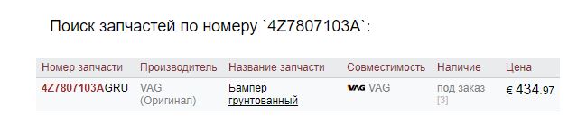 Стоимость новой скорлупы на скриншоте, и это не в мой цвет это только грунотованый бампер.