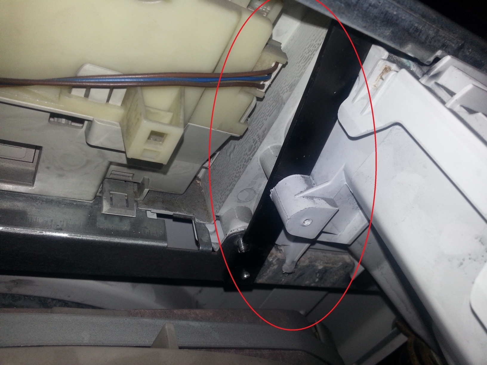 к тому же при доработке нового крепления, немного сместив сам порошкопремник удалось добится того, что сам лоток вставляется в него с небольшим усилием, так что пока при стирке он не выпадает сам по себе при отжиме фотку доработки вырванного крепления прилагаю