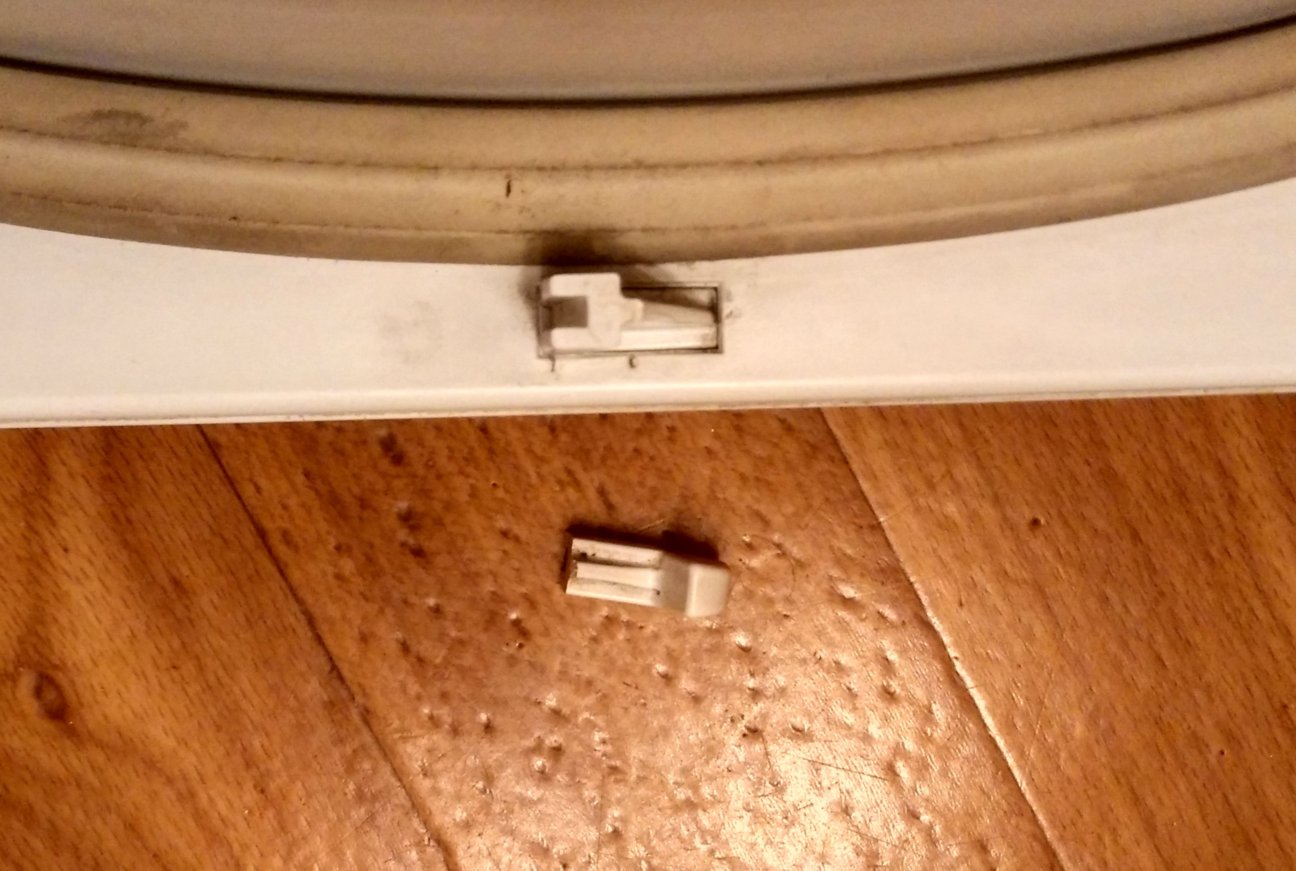 Підкажіть, будь ласка, як краще поремонтувати пластиковий гачок, що тримає зачиненими дверцята старої сушильної машини?