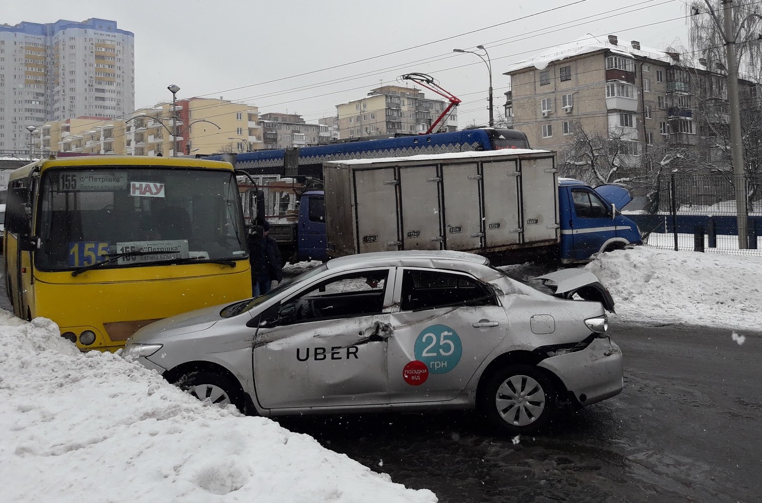 Нова ДТП, півгодини тому, зіштовхнулися авто біля НАУ, в бік центру. Перекриті обидві вільні від снігу смуги. Газель виштовхнуло в бік забору швидкісного трамваю, і він частково перекрив рух трамваям також. Мені здається, швидко розтягнуть, але хз. Я-то їхав на трамваї, і швидко вискочив і обійшов це все, а от тим, хто в авто - не позаздриш.