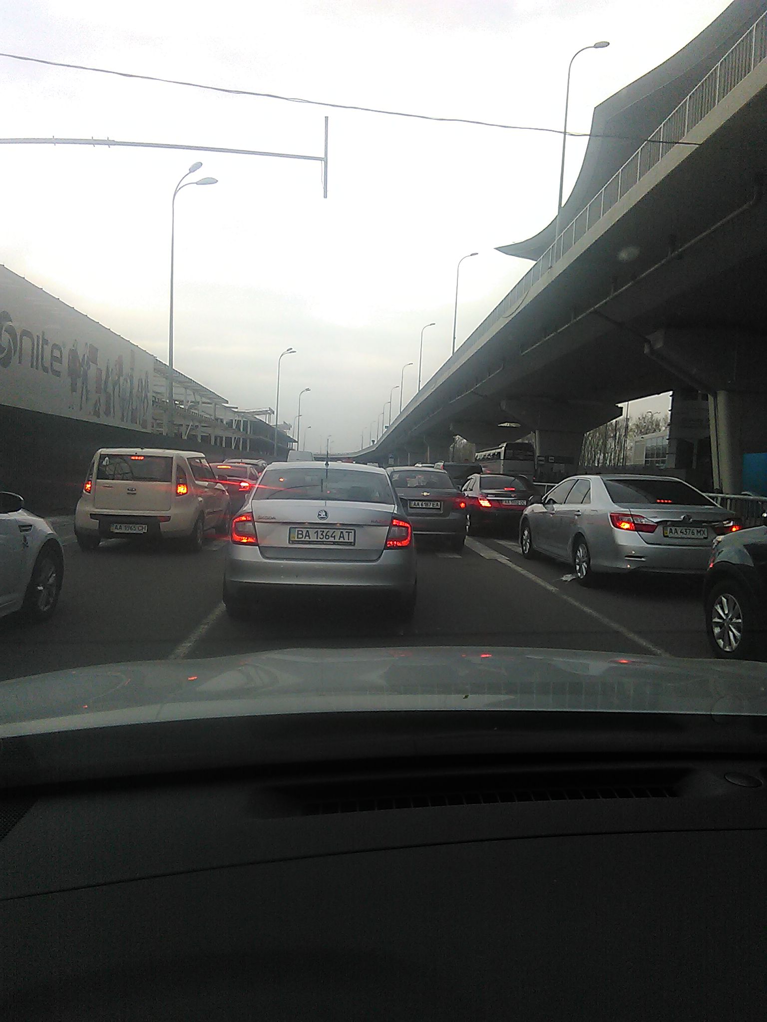Собссно сабж. От поворота с Бориспольской трассы до аэропорта - тянучка, один ряд частично перекрыт. Кому на самолет - учитывайте.