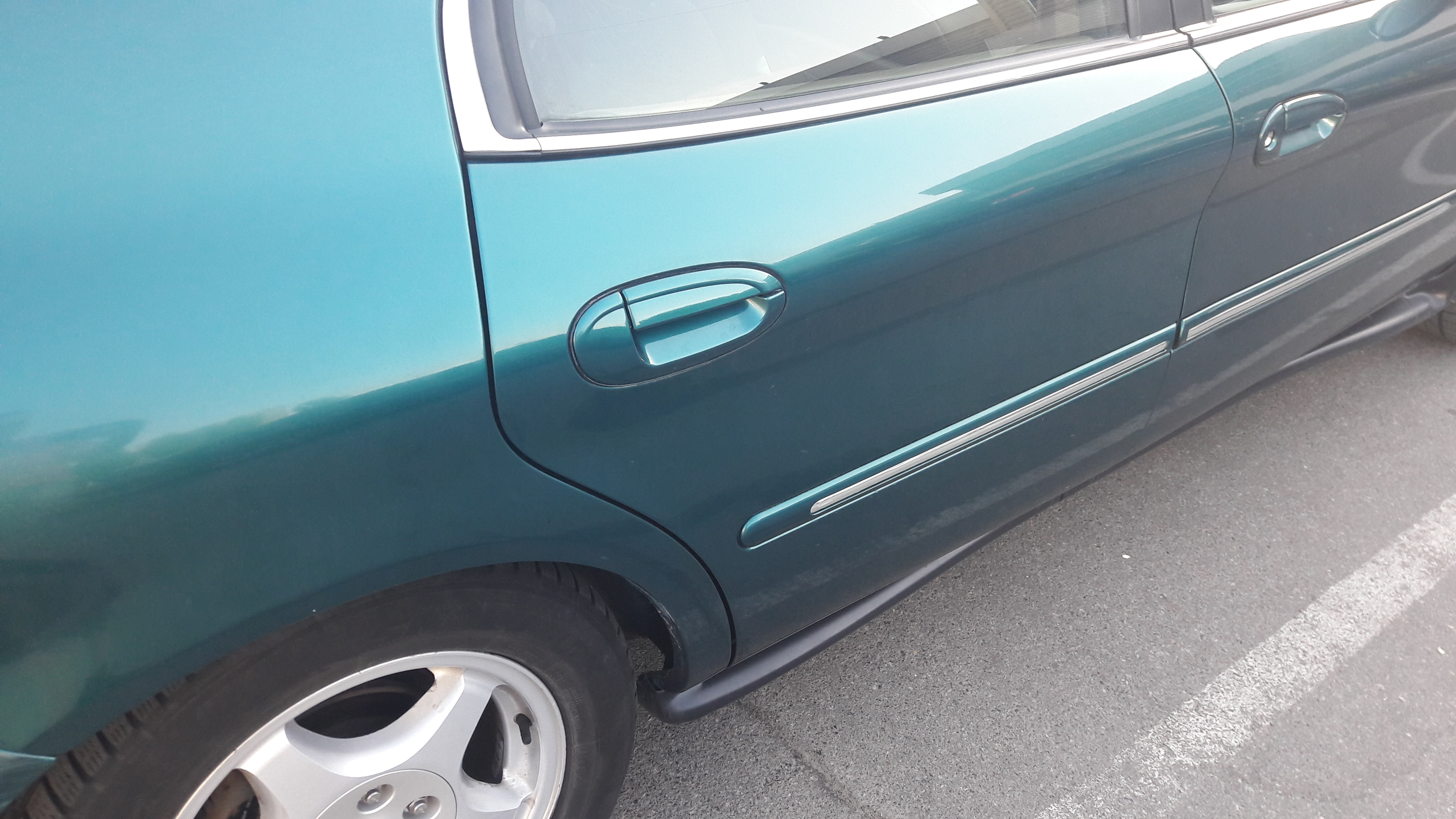 Пострадали дверь и заднее крыло. Т.к. пепелацу пошел третий десяток, не хотелось бы сильно вкладываться. Фотки кликабельные