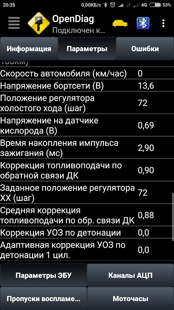 коррекция и средняя коррекция топливоподачи по обратной связи (там где 0.9 и 0.88)