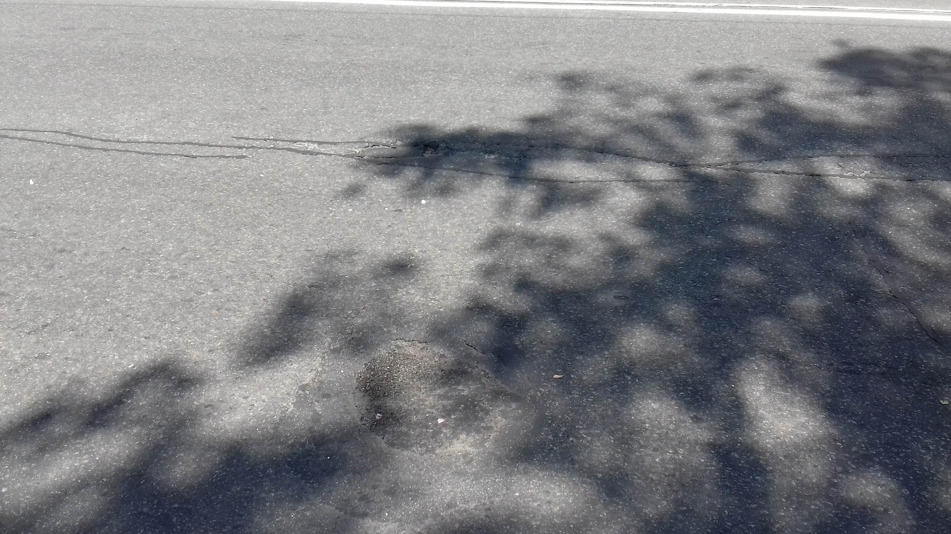 Провал в першій полосі в сторону Львівської площі, з'явився після зливи в понеділок ввечері, візуально під шаром асфальту пустота...