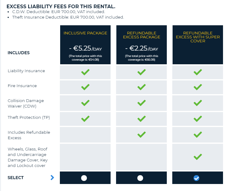 15€/день уже лучше, но не вижу большого смысла платить втрое больше от цены Refund coverage по сути за то, чтобы не оставлять депозит - хотя деньги-то ваши, считайте сами.