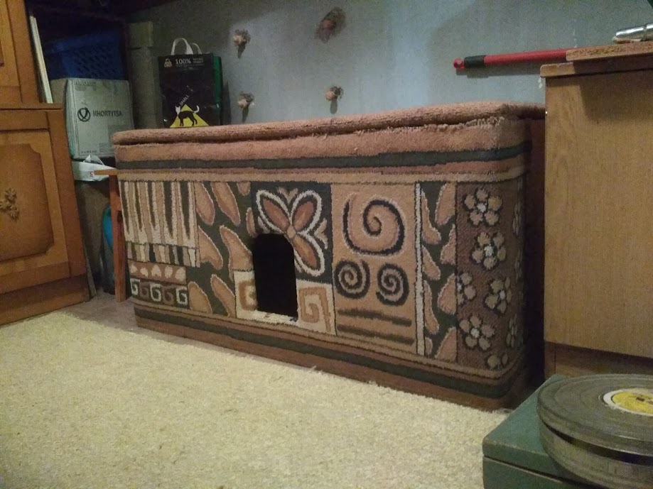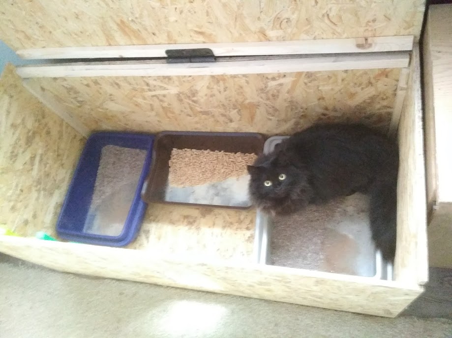 Это была примерка после сборки, наполнитель потом на замену шел, а горшки на мойку. Я только фотать собралась, а тут кошка с тестовым "заплывом" явилась .
