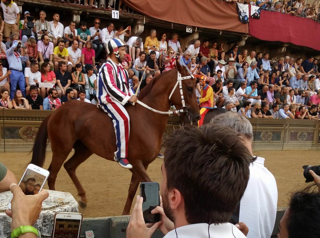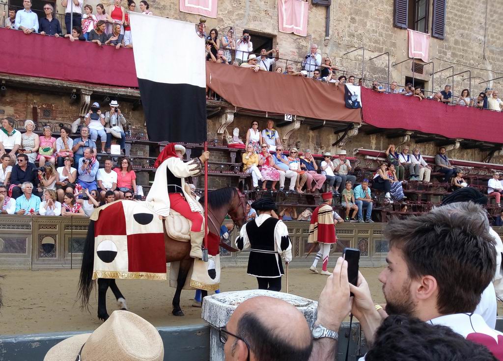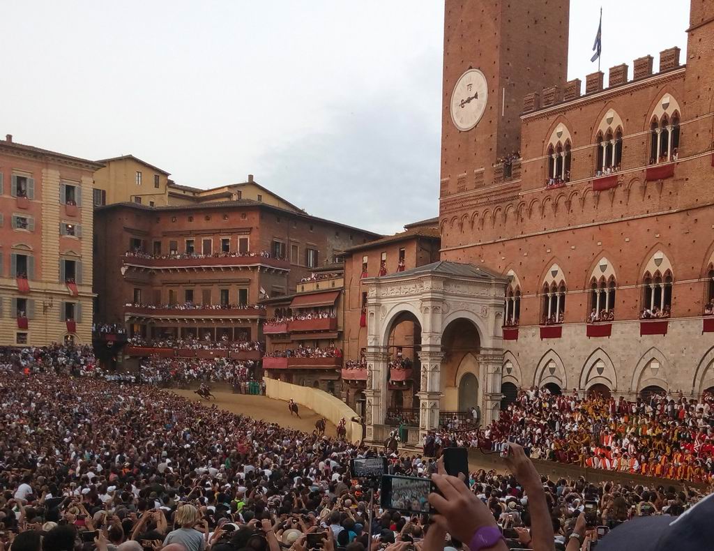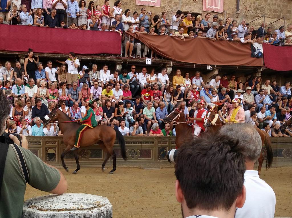 Так получилось, что с некоторых пор в Сиене бываю довольно часто. Поэтому наконец-то посетил и знаменитый местный палио. Это такая гонка на лошадях, в которой соревнуются 10 контрад (районов) города. Всего их 17, как из них выбирают 10, которые будут участвовать и их названий я так и не запомнил, да это и не важно. Палио проводится два раза в год, 2 июля и 16 августа.