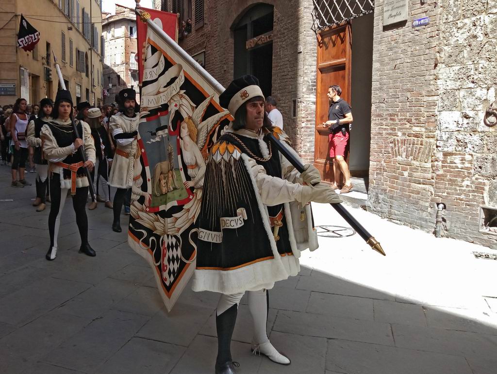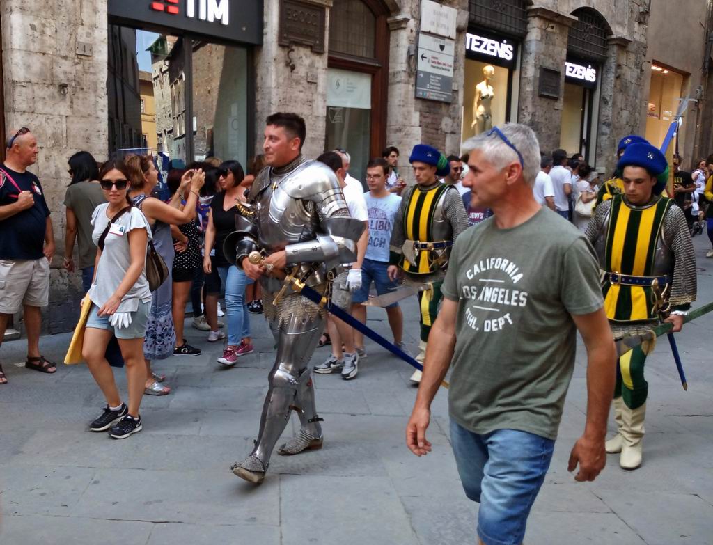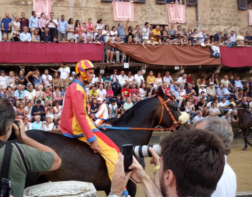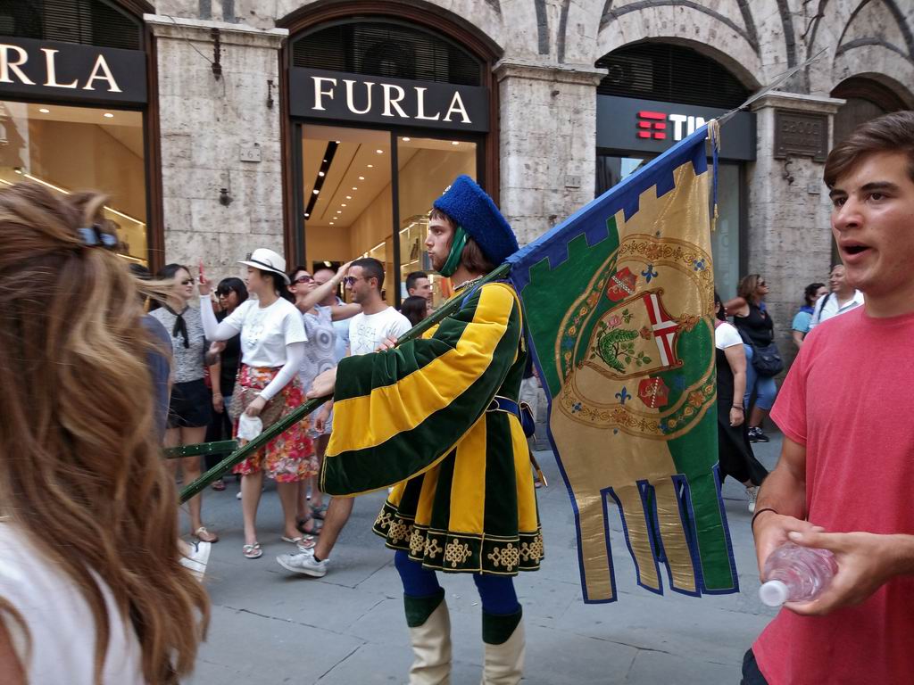 Так получилось, что с некоторых пор в Сиене бываю довольно часто. Поэтому наконец-то посетил и знаменитый местный палио. Это такая гонка на лошадях, в которой соревнуются 10 контрад (районов) города. Всего их 17, как из них выбирают 10, которые будут участвовать и их названий я так и не запомнил, да это и не важно. Палио проводится два раза в год, 2 июля и 16 августа.
