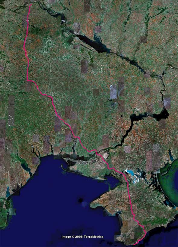Внизу - мой трек Кацивели-Киев от 27.08.06. Пройденное расстояние - 907 км. Выехал в 2:30 ночи. Время в пути - 9 часов. Средняя скорость - 95 км/ч. Если хочешь - качни себе Google Earth 4 , брошу трек в kml для более подробного рассмотрения.