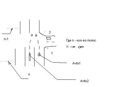 Добавил схемку которая родилась при таком же споре ... Краткие комментарии к схеме: Между точкой 1 и 2 - разметки не существует. Знаков тоже нет. Остальное вродеб-то понятно по схеме. Почему Avto2 имеет приоритет лично для меня огромная загадка. Но, как показывает спор в этой ветке, и инструкторы в автошколах считают, что таки да, оно имеет преимущество ... Посему лично я когда еду на том перекрестке, стараюсь на всяк случай две полосы занимать, если не получается - пропускаю, вне зависимости на месте какого автомобиля я оказался. Несмотря на то, что я полностью уверен - согласно ПДД, преимущество имеет Avto1.