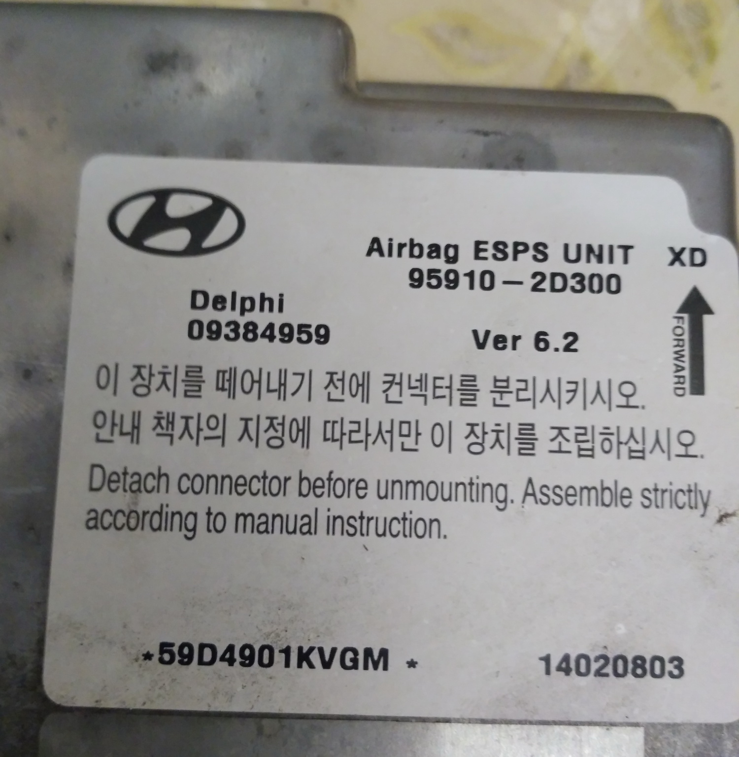 Приветствую, форумчане. У меня Hyundai Elantra 1,6 (2002 г.). Загорелась ошибка "Airbag". На СТО сказали менять надо блок управления подушками безопасности. Сняли его - на нем указан "код" - 959102D300. Вопрос: необходим блок точно с таким кодом или есть подходящие аналоги. Заранее спасибо.