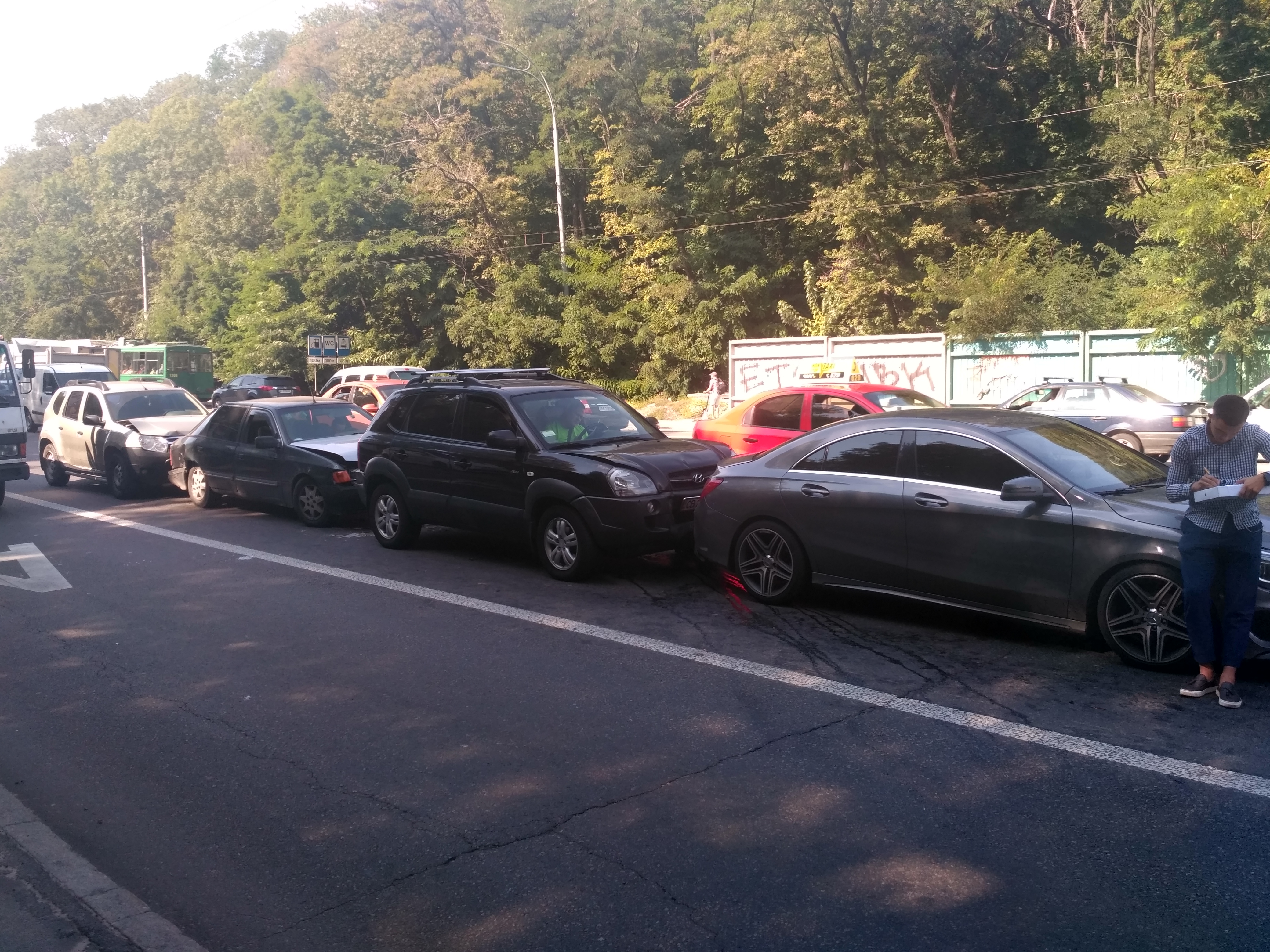 Сегодня чуть выше глосковской АЗС то же, правда машины правда уже частично отвели на территорию АЗС, сколько не насчитал, но два экипажа стояло. От Лыбидской до печерского моста то же мелкие ДТП + один ремонтировался в левой полосе общим количеством около 5-6, сбился считать, вишенкой на тортик оказалась съемочаня группа на Дарницком мосту и пробень на всю длину моста.