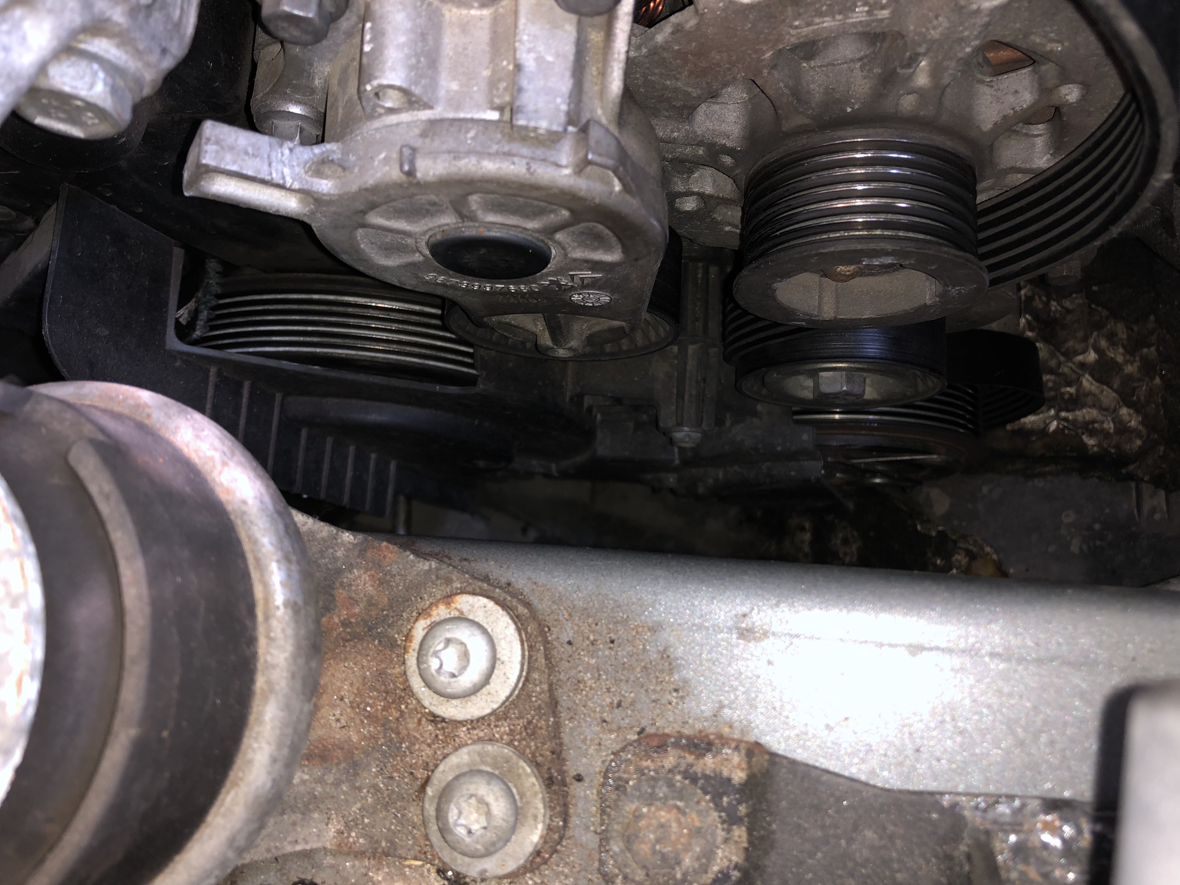 Ремень действительно как новый,и клинит-не крутится самый крайний ролик,или как его назвать...на фото.