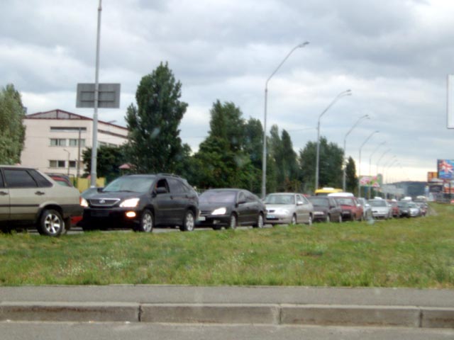 Просто со скуки решил выложить фотки. Где-то в 18:30 подъехал к Оболони и встрял в одуренную пробку, со стороны Петровки и до метро Оболонь проспект был полностью забит машинами. Причина - плотная группа набитых машин. Точнее саму пробку видимо создала пожарная машина - судя по всему у кого-то при аварии лопнул бак и они смывали бензин с дороги. Я успел заметить что у красной таврии разбит весь правый бок, но сфоткать не успел. Ну и вроде припаркованные задеты. Три фотки далее.