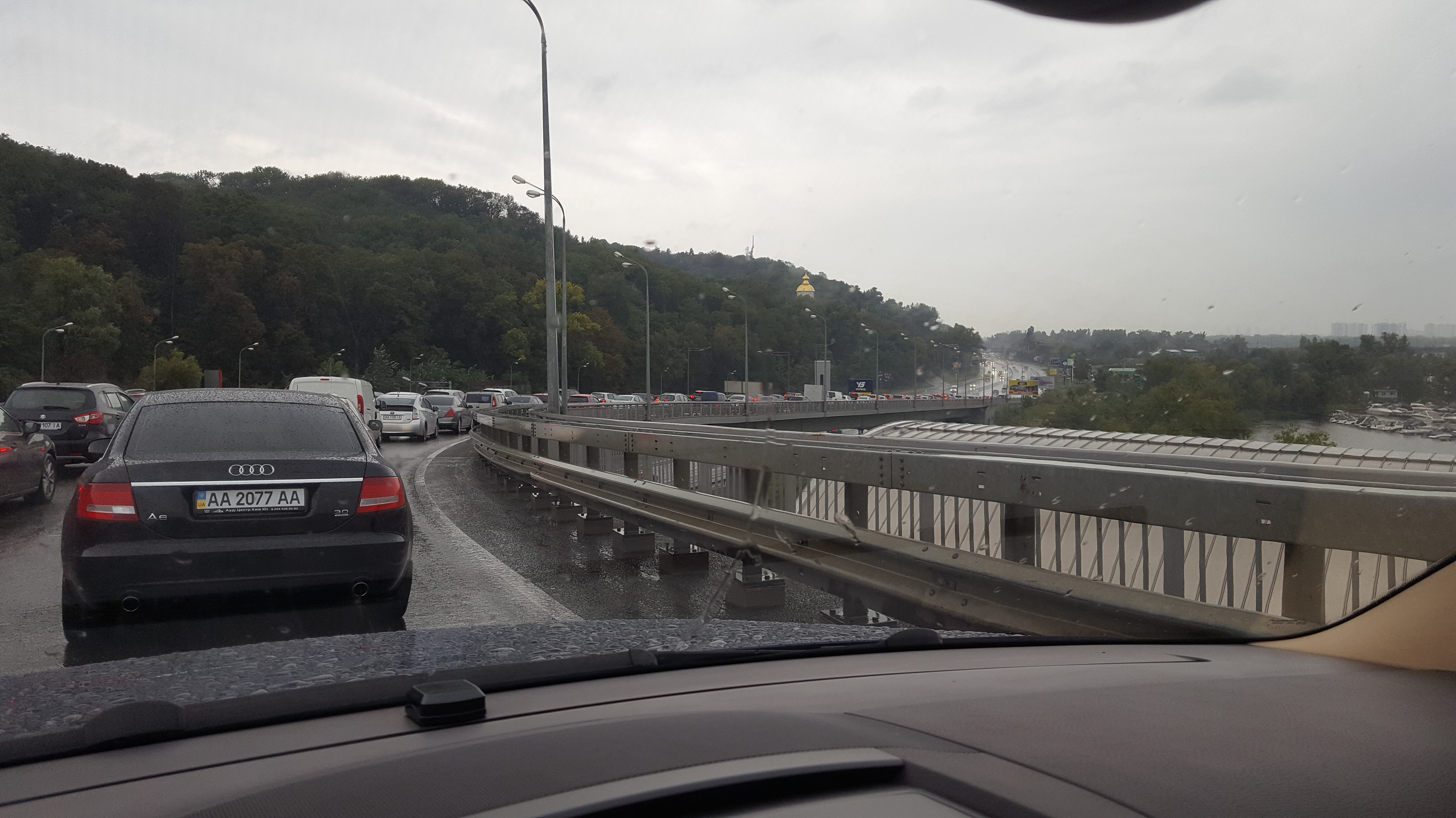 Так и не понял что это было. Сначала очень медленно тянулись через весь мост (для такой погоды это уже привычно - видимо в дождь не все умеют ездить), но когда до съезда с моста осталось метров 150 - все встало. Непосредственно на съезде на столичку мусора держали весь поток, продолжалось это минут 10-15. Все это время по столичке в сторону Подола шло реденькое движение, эскортов не заметил. Народ яросно сигналил, но забить на мусоров и поехать, к сожалению никто не решился. Ради кого перекрывали , кого вычеркивать на предстоящих выборах ?