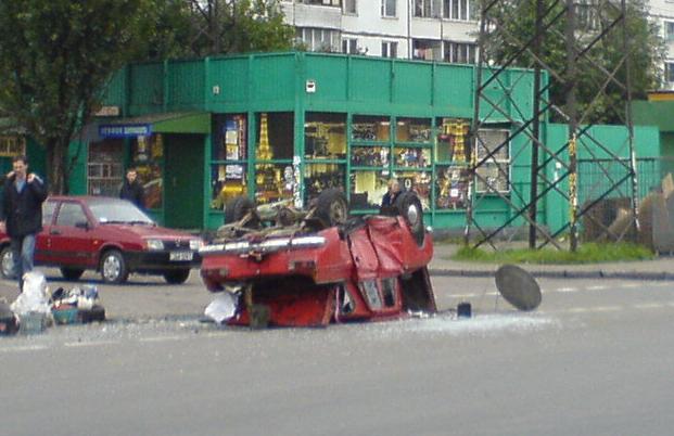 В субботу наблюдал последствия ДТП на виноградаре. Стоит москвич перевёрнутый и ланос с слегка помятой задницей.
