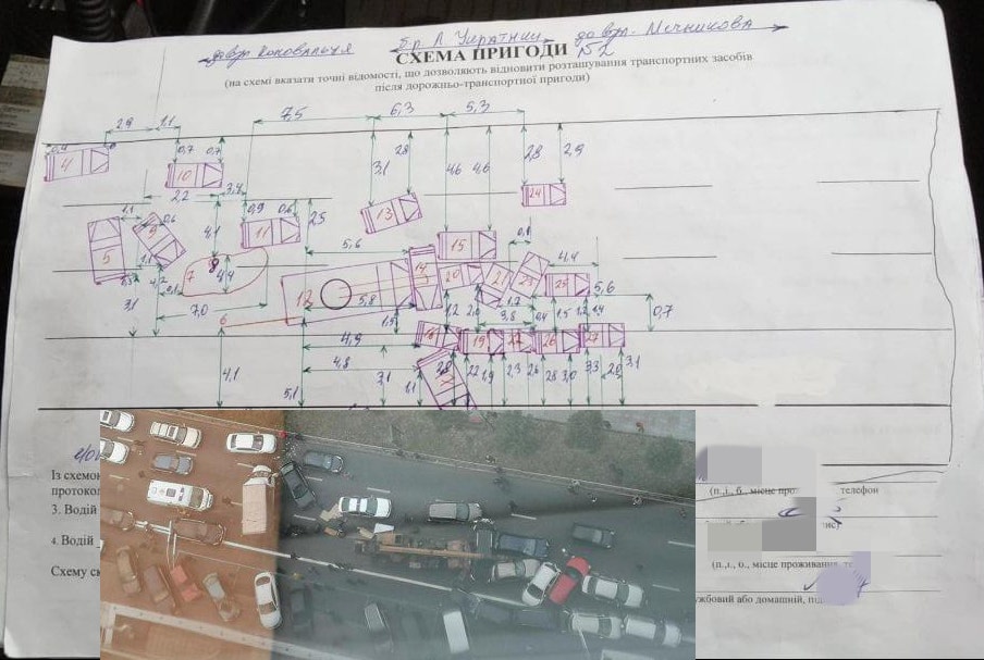 А на фото/відео з дрона (з ширококутним об'єктивом, ще який врахуй потім при розборі фото для таких маштабних ДТП) ти що будеш підписувати?