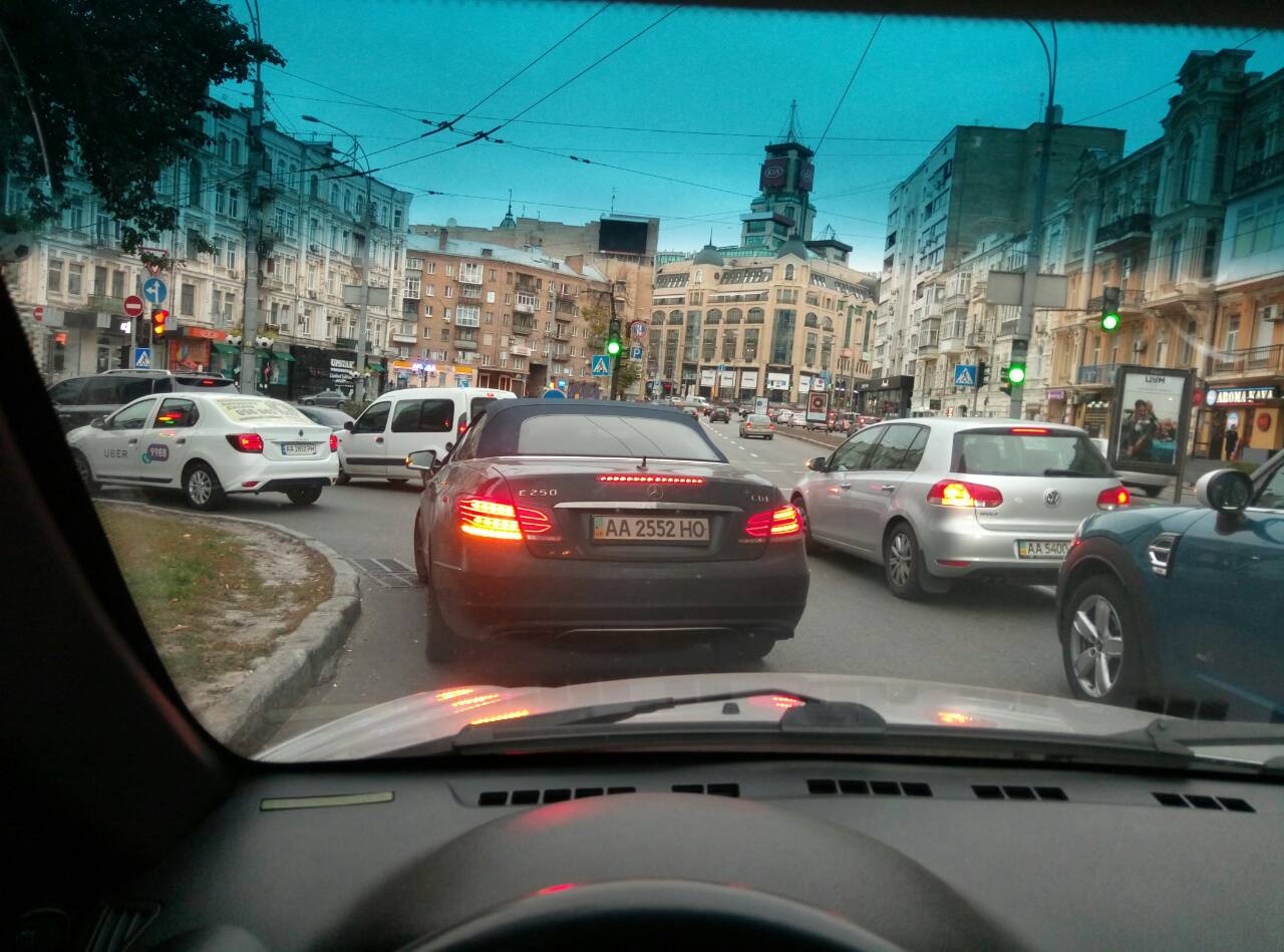 Такая же фигня. Тоже мерс серебристый на польских номерах по скоростному с борщаги в сторону центра. Когда газовал, на асфальте реально чёрная полоса оставалась. Вчера в районе 20.00.