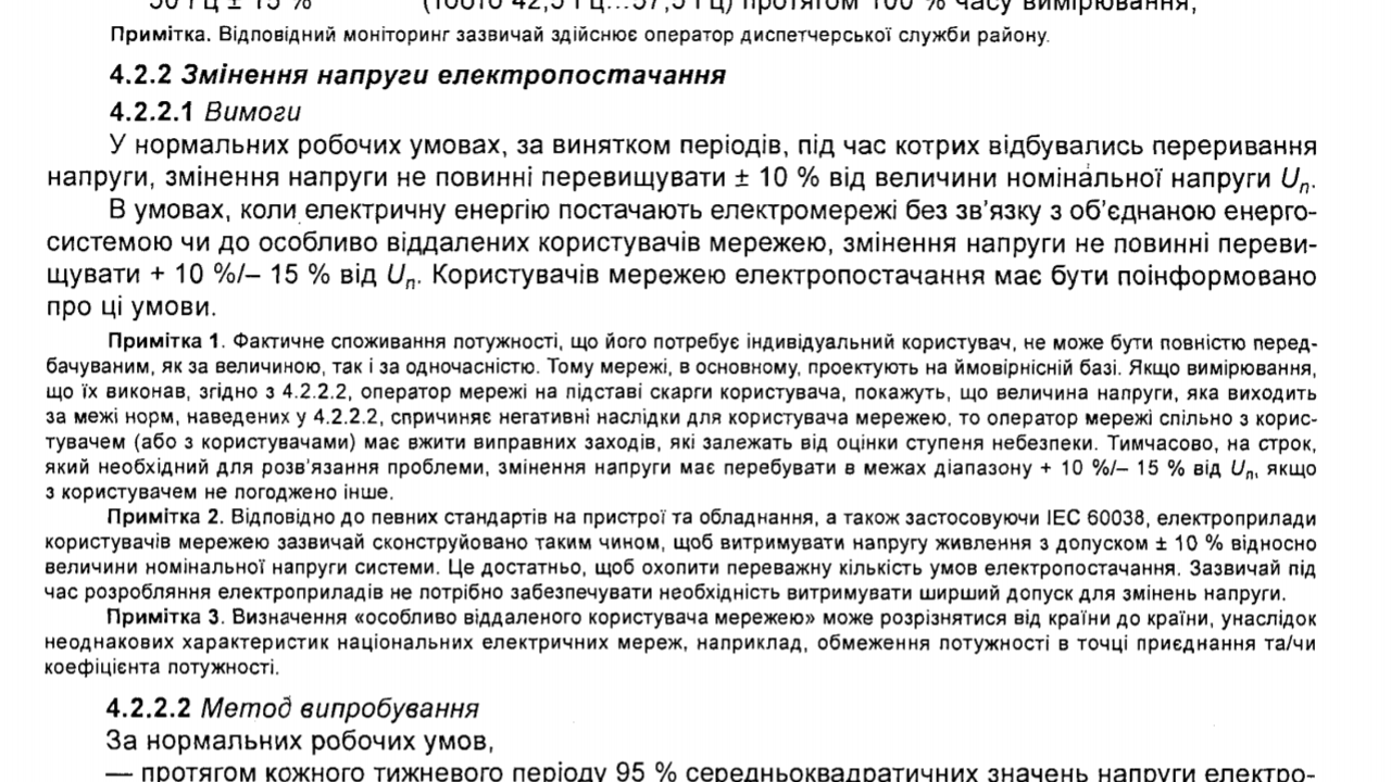 Вище цитата з ДСТУ, не має там нічого про "післяаварійний режим". Є +10, -15 все, точка
