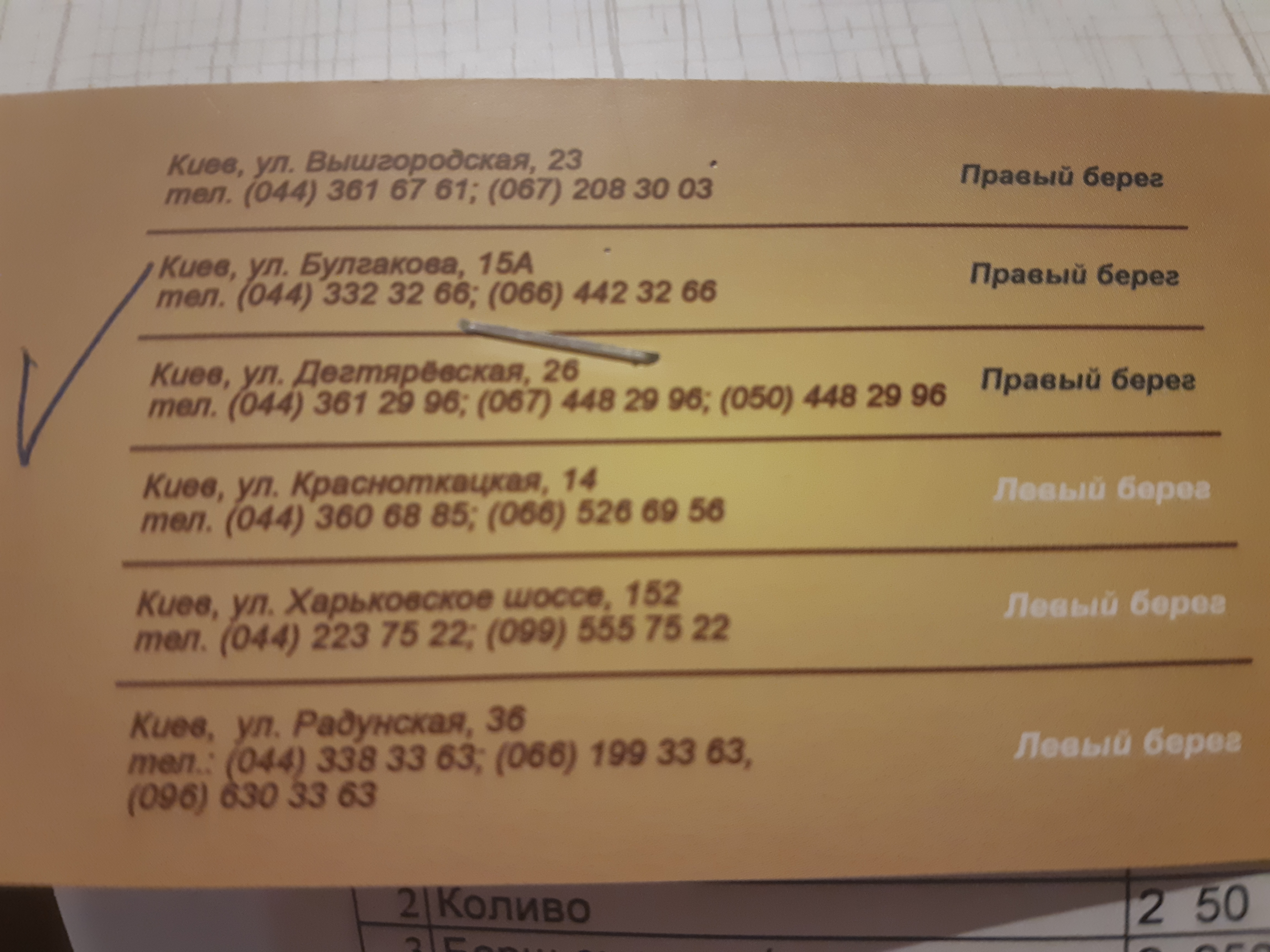 По теме. Если кому-то пригодится, хоть и к сожалению, но бывает же… Фото обратной стороны визитки с Поминальной по пр. Победы, 118 (с остальными локациями)