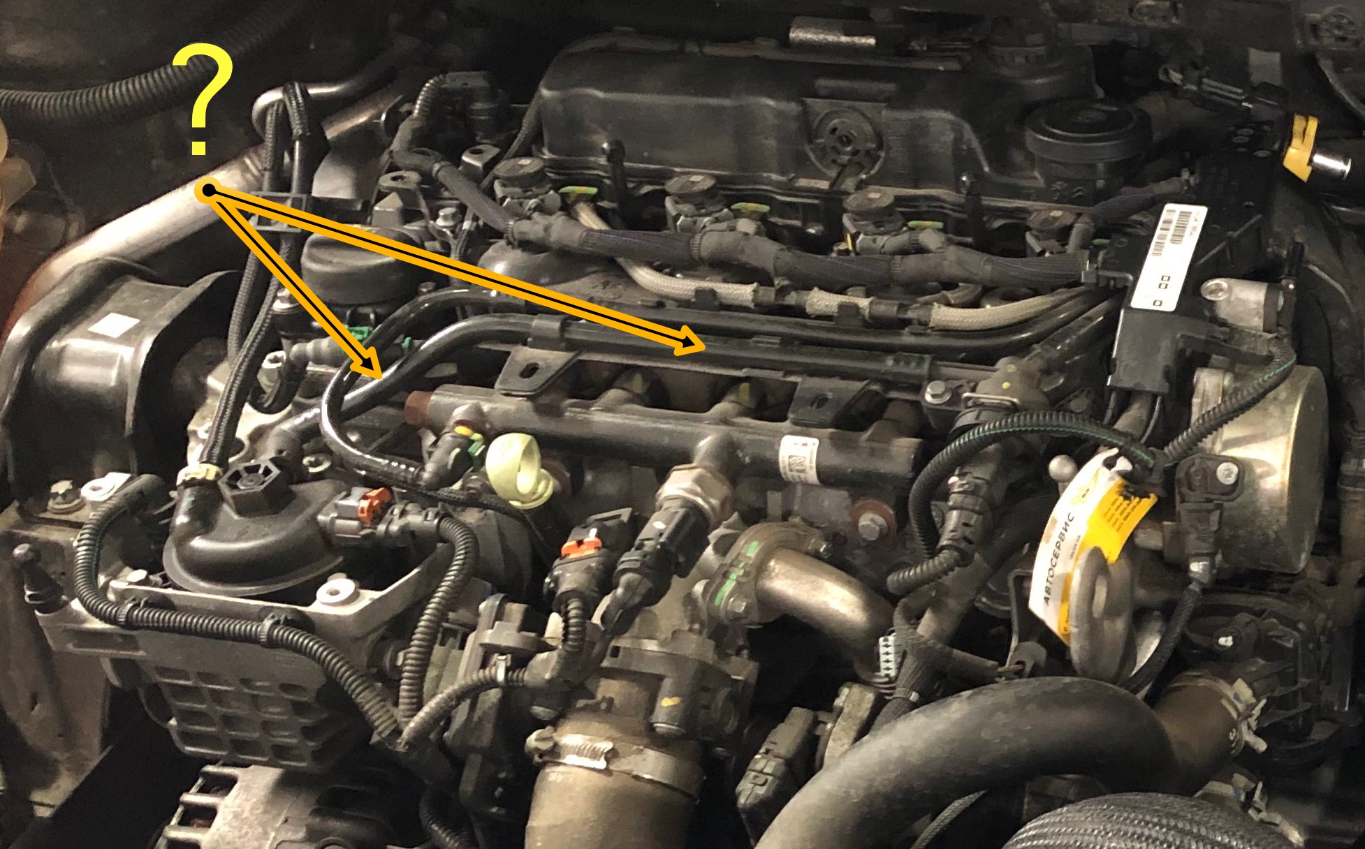 Двигатель 2,0. Камрады, а посмотрите под декоративную крышку, пожалуйста. Вот та трубка на картинке, она у вас прозрачная?