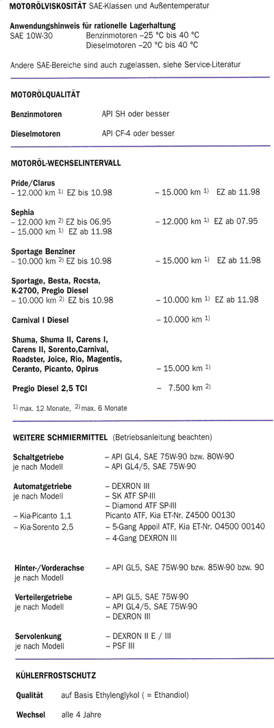 Если это все-таки KIA, то, ИМХО, можно спокойно продолжать круглогодично использовать 5W-40. Рекомендации KIA даны для масел давно устаревшего класса качества, когда затруднительно было получить всесезонное масло с широким диапазоном вязкости без применения большого количества загущающих присадок (именно с этим связано разграничение вязкости в зависимости от температуры). Сейчас таких масел полно (их можно отличить, в частности, по наличию допусков VW 500.00, VW 502.00 или VW 503.01).