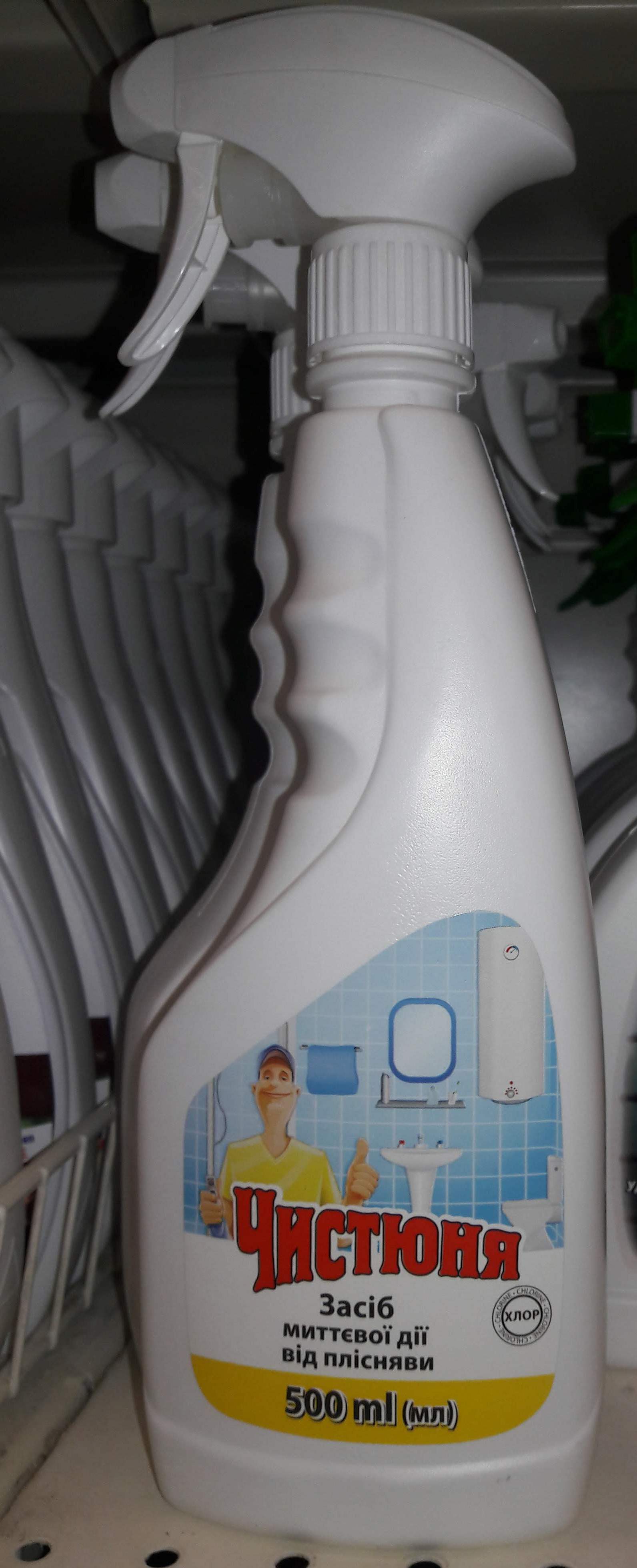 На бутылке пишут - хлор, и по запаху я его идентифицировал). Стоит кажется 49 грн. В леруа.