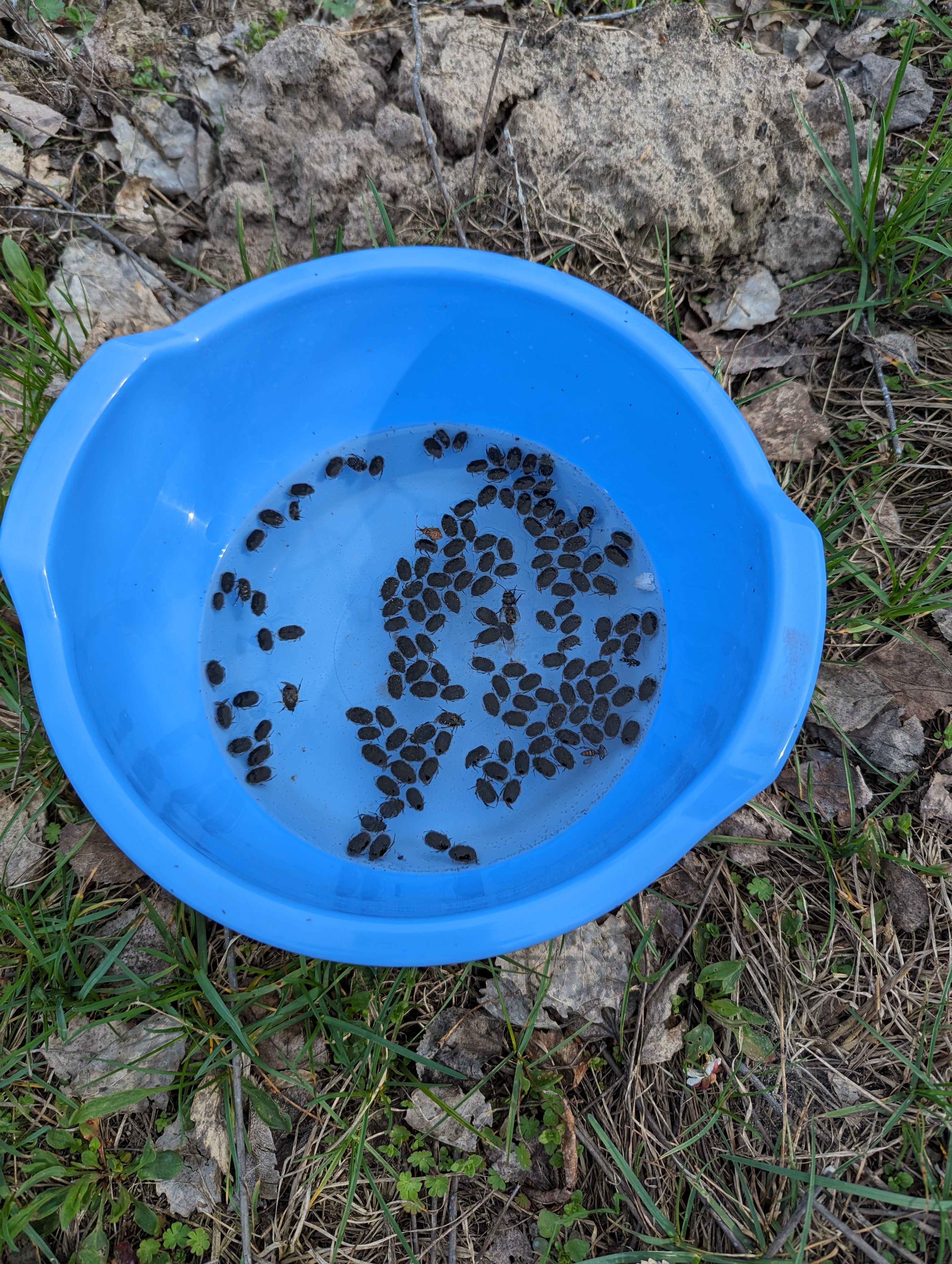 Сині тазики самі явно не справляються. Незважаючи що вони повні оленки на деревах теж хватає. Довелось додатково обробити Прованто-Верналом. Стало заначно краще. Зараз трапляються тільки поодинокі особини.