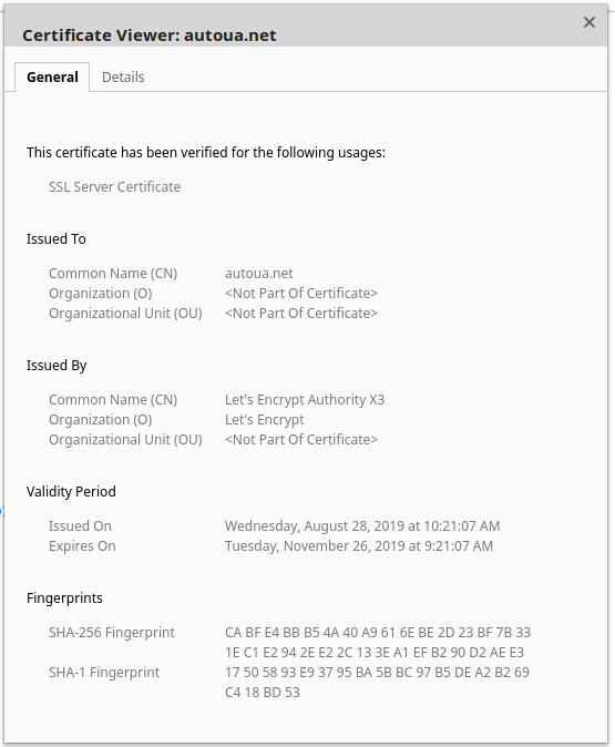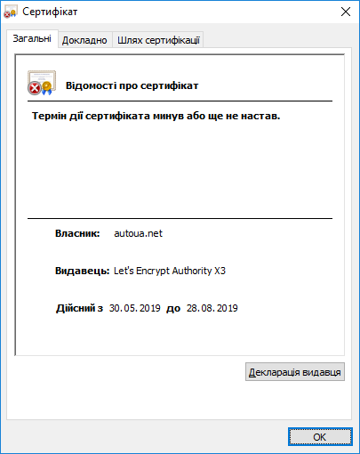 Будь яку сторінку можна забрати через HTTPS, але всі URL ведуть на HTTP . Сертифікат не мінявся, як і раніше прострочений.