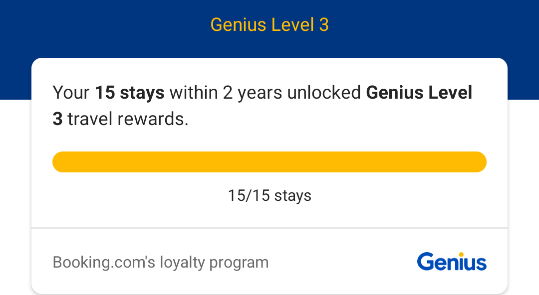 Забавно, я тоже обнаружил у себя такое повышение за 15 поездок за два года. Но вот за последние даже три года у меня точно не было 15 броней через букинг, основные через airbnb. Непонятно, как они считают, но хай будэ.