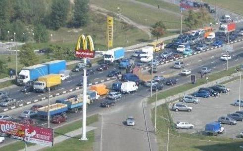 В том месте все фуры и грузовики перестраиваются в 3-й ряд в связи со скопищем маршруток возле метро.