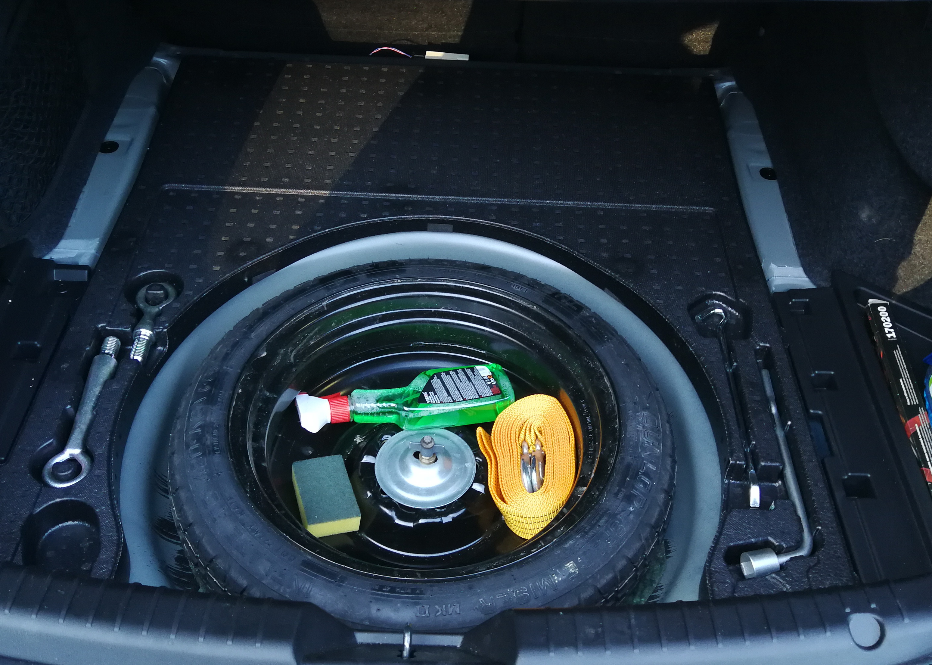 Покупается на OLX докатка от GH (T125/70D16) + сверху понадобится пенопласт GJR9688MXA (взял у официалов за 2648 грн.) + крепление GHP956960A из Польши заказал ~350 грн. (тут надо будет немного заколхозить, т.к. высота болта слишком большая, понадобится доп. шайба или пилить болт). Тут есть подтверждение, что докатка от GH подходит. Там-же есть и другие отчеты об установке докатки от GH на 3-е поколение. Выглядит так (фото сделано до установки оригинального крепления GHP956960A):