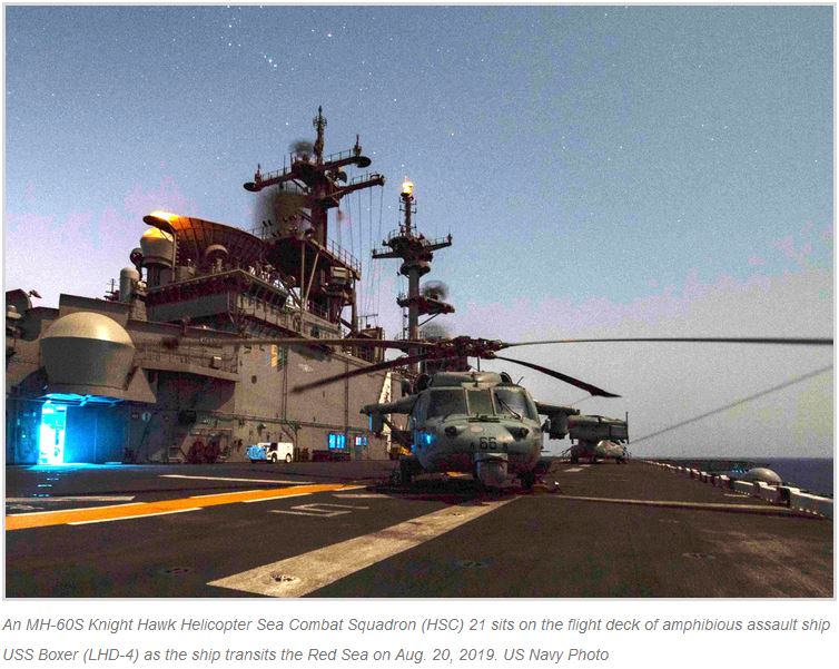 Vladimir_Y 29.08.2019 17:54 пишет:Imho Красное море, залив Акаба.The Boxer Amphibious Ready Group (ARG) with 11th Marine Expeditionary Unit (MEU) is in the Gulf of Aqaba.