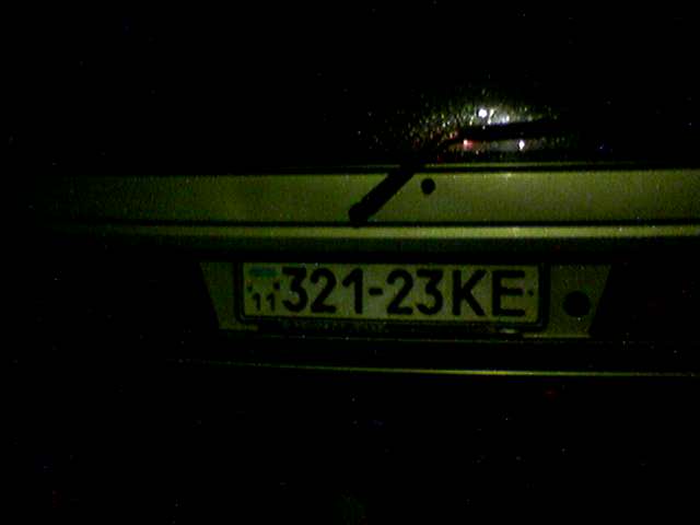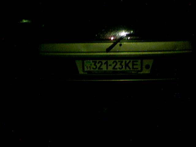 Но это всё лирика, теперь главное: Всё-таки я не очень хороший человек и даже можно сказать падонаг, мне очень стыдно Потому что я в эмоциях всё-таки наехал на не в чём неповинного человека на Пассате Б3, надо теперь как-то передним извиниться, какую-то бутылку ему выставить, чтоли... Так как после детального расспроса вахтёрши и после сегодняшнего вечера всё стало на свои места. Я хоть и замерял рулеткой, высота практически совпадала, но угол его бампера был уж больно тупой и меня реально потом взяли сомнения, после того как я увидел насколько он спокоен и т.д., я долго думал и пришёл к выводу, что таки есь большая вероятность ,шо я погарячился, так как пацаны, которые ещё и водители, в машинах, тем более распространённых, ошибаются редко и скорее всего надо таки искать 405 пыж универсал. + вахтёрша сказала, что этого чувака на пассате она тогда вечером не видела шоб он шастал. Но когда ей объяснили, шо за кузов "универсал", то она вспомнила, что как раз незадолго до того, как у меня сработала сигналка, выходил другой сосед, у которого вроде похожая машина, а запомнила она его потому, что он ей что-то сказанул когда выходил и ей показалось, шо он немного под градусом. Я попросил показать кто и номер машины записать, в выходные чувака не замечено, потом пару дней она не дежурила. И вот сегодня картина маслом: Иду я со стоянки домой вечером и вижу у подезда 405 пыж универсал, цвет в темноте плохо разглядывается, но вроде такой немного золотистый сеталик, так что по описанию "желтоватый" сходится и вижу чувак с бабой от туда что-то разгружает и чувак с усиками, тоже по описанию подходит, я сразу в полъезд: спрашиваю - Он?!, - Да!, точно?!!!, - Да!!! Я бегом за соедом, который видел как отъезжала машина, но его нет. Короче спустился на всякий случал ещё и номер своткал шоб не забыть, и тут появился этот хер. Короче померяли рулеткой, когда я стал на тоже меято, то по высоте всё схдится один в один, моя царапина на крыле, где видно грунт и угод его заднего бампера, но этот тушкан всё отрицает. Сначала, когда он вышел, я поздоровался и спросил : - "Ваша машина?", то тип замялся, а потом сказал "Нет.", ну я тогда говорю "Но ездите Вы?!!!", чувак замялся и олком ничего не ответил. Я у него спросил не хочет ли он сам мне ничего рассказать про четверг, он тоже промычал типа нет, короче обяснил ему ситуацию, он начал говорить, шо типа где машина, покажи, давай меряй и т.д., ну я говорю шо типа подожди 10 мин., пригнал со стоянки, померяли, всё сходится, тогда чувак начал трындеть. шо типа мол он не мог такую царапину сделать, у него угол бампера не такой острый... Вобщем ничхера я от него конечно же не добился и бампер телефонам фоткать не было смысла, темно, хотя и црапины есть на углу, но бампер не крашеный, так что хрен докажешь. Я вот только затупил фарами своими посветить и сфоткать На фотке хоть как-то получился тлько номер, потому что классно свет от фонаря уличного отражает.
