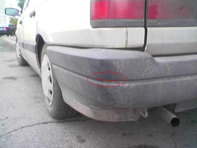 В четверг вечером приключилась у меня банальная, но весьма неприятная херня. Какой-то чудак на букву "М" прямо у меня во дворе, въехал мне в крыло и тупо свалил. Сосед вроде как видел, что как раз когда у меня вигналка сработала, отъезжало что-то пожожее на пежо 405 универсал светлый, цвет типа желтоватый, песочный такой... Ну я вот вспомнил, что такого цвета стояла тачка, но фольц пассат Б3 универсал. В субботу снова увидел его под домом, на заднем бампере слева на углу вытерта грязь, по высоте вроде похоже, но чувак съезжает, шо типа мол небыло его в тот день ваще. Тоесть реально хер докажешь. правда когда я у вахтёрши спрашивал, то она говорила, что когда срабтала сигналка, то пока она вышла, никого уже рядом небыло. А теперь она говорит, что перед этим видела как выходил какой-то чуваг, но не этот на фольце и вроде как у него тачка похожая и вроде как ей показалось, шо он даже немного под гражусом был. Короче тогда трындела шо нифига не видела и не знает, а теперь говорит другое и шо покажет того чувака, если он ещё появится, вобщем история тёмная и доказать что-лио сложно.