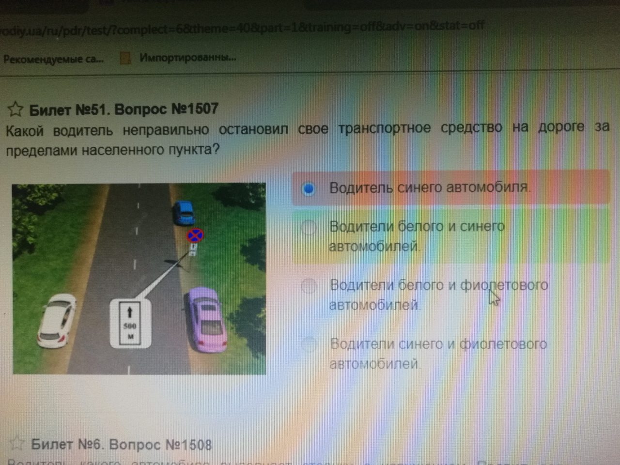 А відповідь на питання, якщо я правильно зрозумів ту табличку під знаком (а я в них не розбираюся) - "білого та синього" (другий варіант).