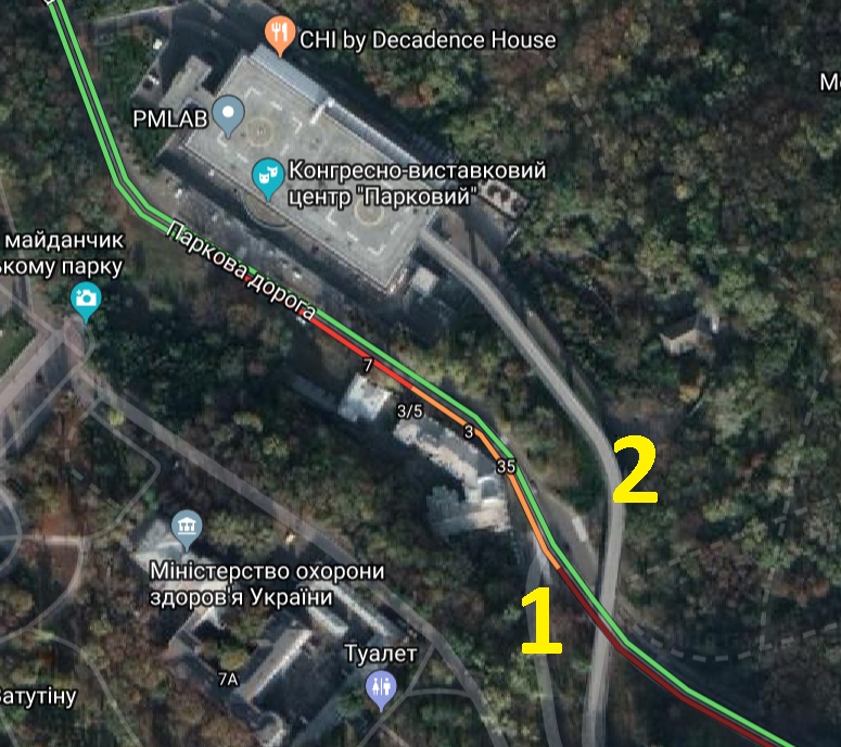 Верхнюю да, видно. А вот ,что там со стороны реки...ХЗ. Плюс непонятка с серыми линиями (1 и 2). Я там был 100500 лет назад. Мало ли...мож эстакад настроили каких.