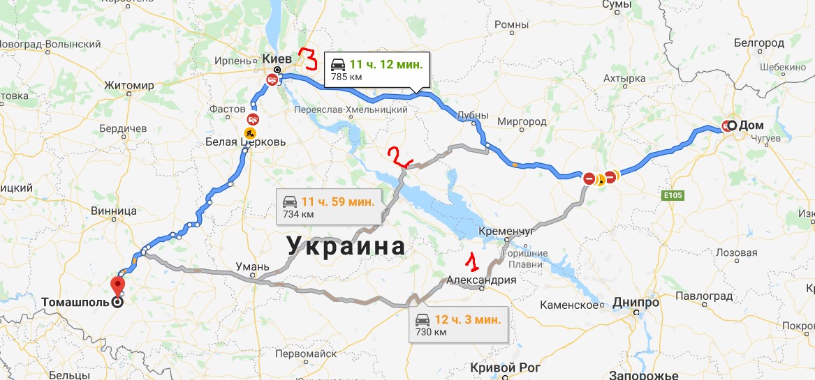 Подскажите, какой оптимальный маршрут выбрать для езды в первых числах января? Первый маршрут самый короткий, но там дорога усажена просто в сопли. Ну т.е. ехать можно, но на большинстве участков не более 80 км\ч. Летом я бы поехал через Киев, но т.к. зимой итак скорость движения невысокая, то смысла лепить себе дополнительыне 200 км в оба конца я не особо вижу. Есть вариант еще через Житомир... Ну или по Киев-Одесса, на Умань, но оба варика как-то вообще не оч, т.к. лепится дополнительынй 300 км.